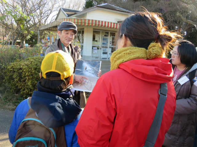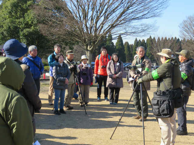 | 1月は恒例となっている昭和の森の野鳥観察です。寒さもだんだんと厳しくなってきましたが、34名の参加者が集まってくれました。さてさて、どんな鳥たちが姿を現してくれるやら・・・ワクワクしながら観察会のスタートです。 | |