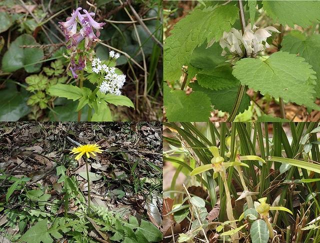 "![]() 03 左上から、ムラサキケマン、ツルカノコソウ、オドリコソウ、カントウタンポポ、シュンラン |