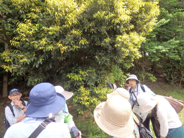 ![]() 10 大きなカツラの樹の下で、今日の観察会の感想を皆で言いました |