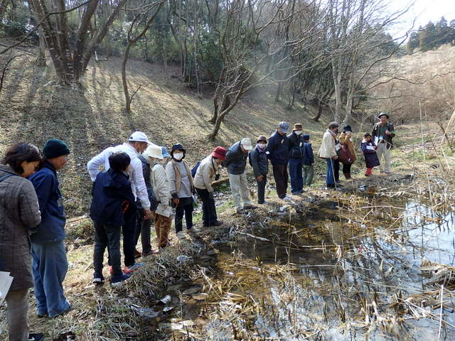 | 啓蟄を過ぎたとはいえ、まだ冷たい空気の昭和の森の中、ウグイスのさえずりを聞きながら、オオイヌノフグリやタチツボスミレ等の花、ニホンアカガエルの卵塊、メダカの学校などを観ていきました。参加者の皆さんは、春の訪れを体にしっかりと感じた観察会となったようでした。 | |