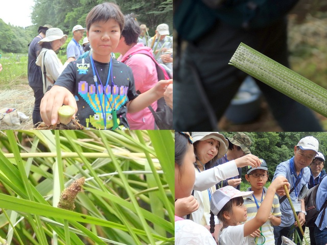 ![]() 01  ヒメガマ、アシ、ショウブの葉や茎、根っこをルーペで確認しました |