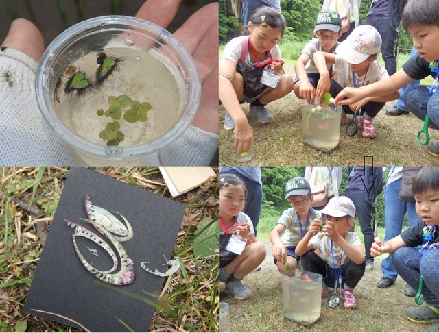イチョウウキゴケやウキクサ、指導員持参のホテイアオイが浮かぶ仕組み、 |