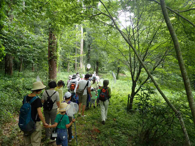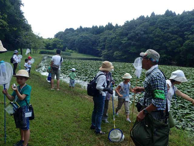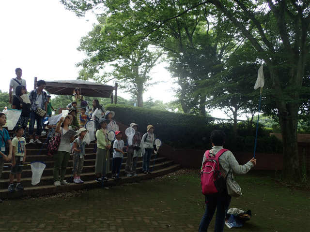 | 今年の夏は不安定なお天気が続いていますが、観察会当日はお天気にも恵まれ、夏休み中ということもあって、33名の参加者がいらっしゃいました。子ども達もたくさん参加してくれました。どんなトンボやセミに出会えるのか、ワクワク、ドキドキしながら観察会のスタートです。 | |