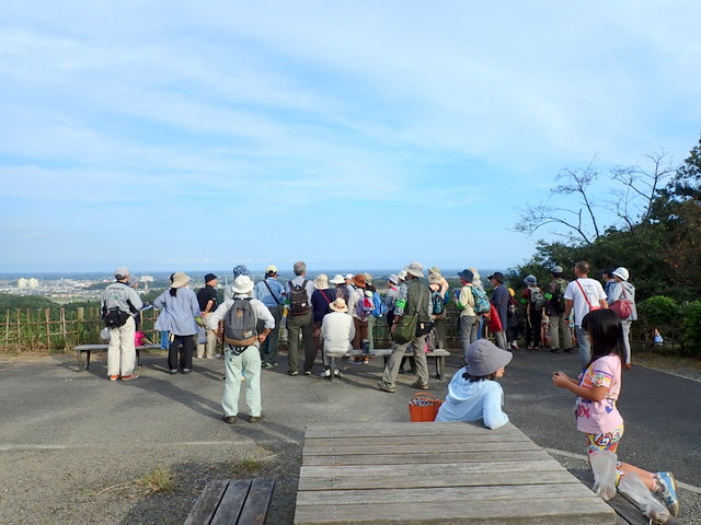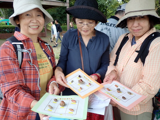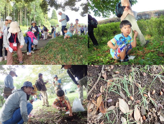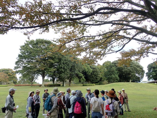 今回は昭和の森で巨樹・古木、展望台、遺跡などをゆったり3時間かけて巡りました。 参加者は、ドングリやトチの実などの木の実を拾ったり、カマキリやナナホシテントウなどの秋の虫を見つけたりして秋の一日を楽しみました。 |
