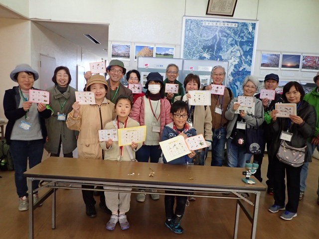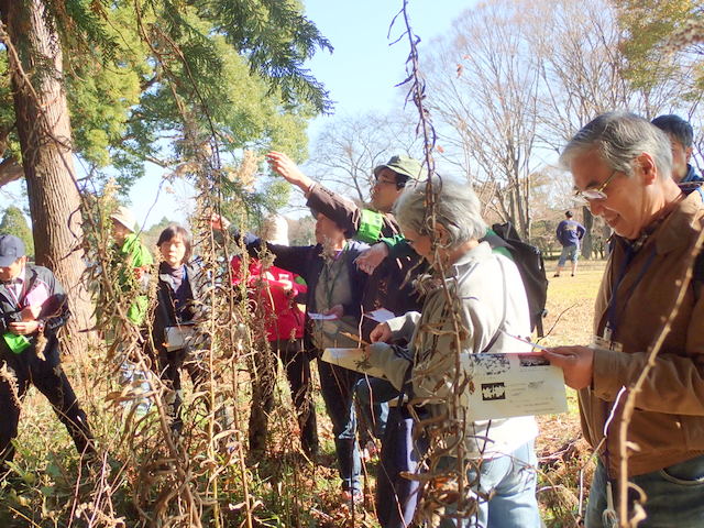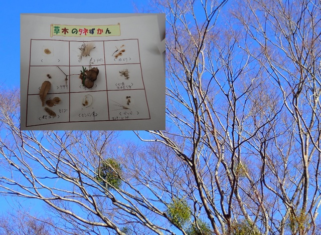 | 小春日和の空の下、種の不思議シリーズ「風に舞う種」観察会が実施されました。参加者は、普段よく観ることのない風に舞う種をしっかりと観察しました。子孫繁栄のため、種に翼や綿毛を付けて遠くへ飛ばす動けない植物の知恵に気づき、感心していました。最後に種図鑑も完成し、大満足の観察会となりました。 | |