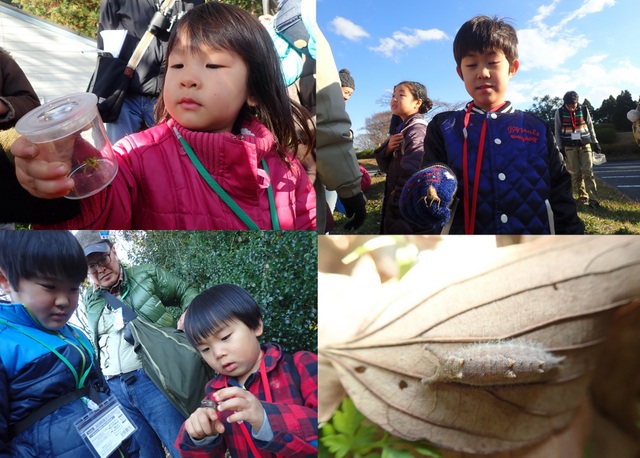 小春日和の昭和の森で「生き物たちの冬」観察会が実施されました。虫博士の子ども達が たくさん参加し、冬の生き物たちをたくさん見つけました。冬の生き物たちは、温かい落ち葉や土の中などで、様々な工夫をして寒い冬を生き抜いていることを知りました。 |