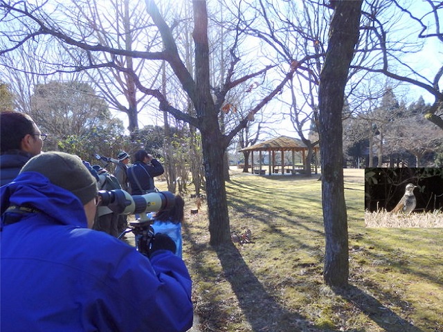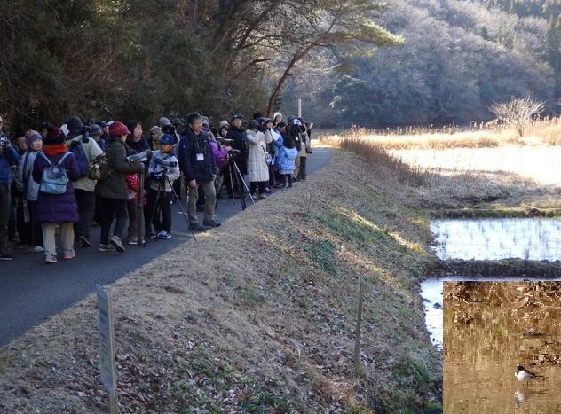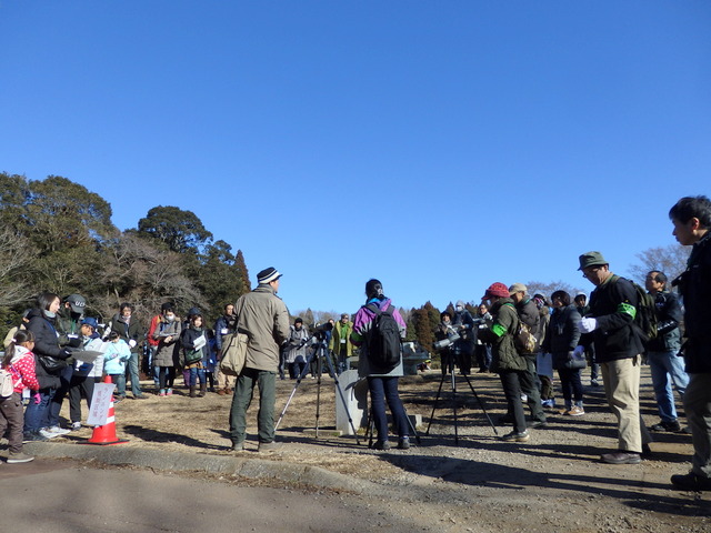 | 2018年初観察会のテーマは、「バードウォッチング最初の一歩」。冬晴れの昭和の森に45名の参加者が集まりました。参加者は、冬によく観られるツグミやムクドリ、マガモ、オオバン等を望遠鏡でじっくり観察し、野鳥のかわいらしさや美しさを堪能しました。 | |