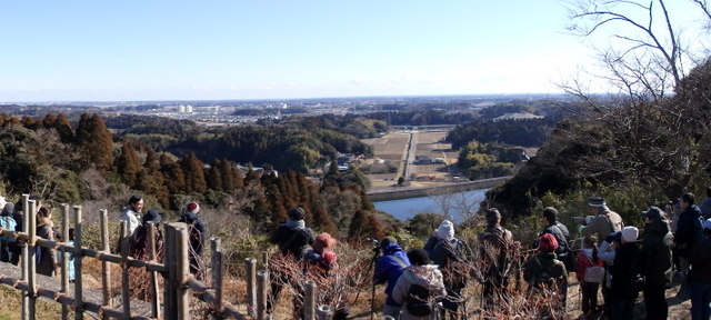 展望台から小中池の水鳥や九十九里平野、太平洋を眺望。 |