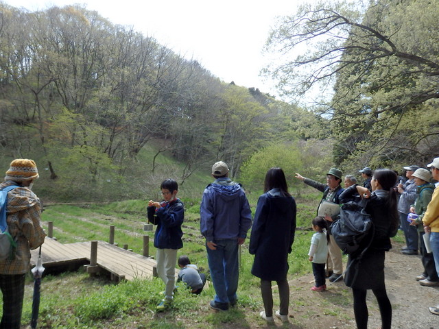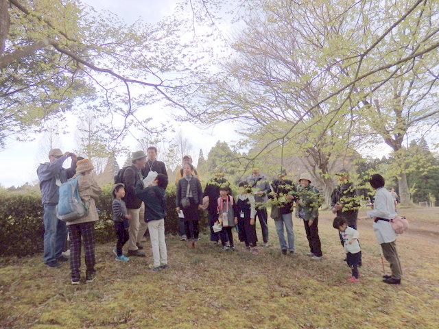 | 春の柔らかい陽ざしと若葉の昭和の森で「春の花」観察会が開催されました。参加者は、昭和の森のさまざまな春の花や若葉を観察し、それぞれの子孫を残すための戦略を観察しました。そして、その巧みさに感心しました。 | |