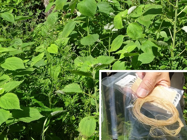 青々と繁茂しているカラムシ。昔は茎から繊維をとって、紐や着物にしたり、 |