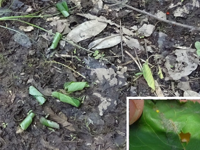 キブシの下には沢山のオトシブミ! 試しに、一つ丁寧にほどいてみました。 | |