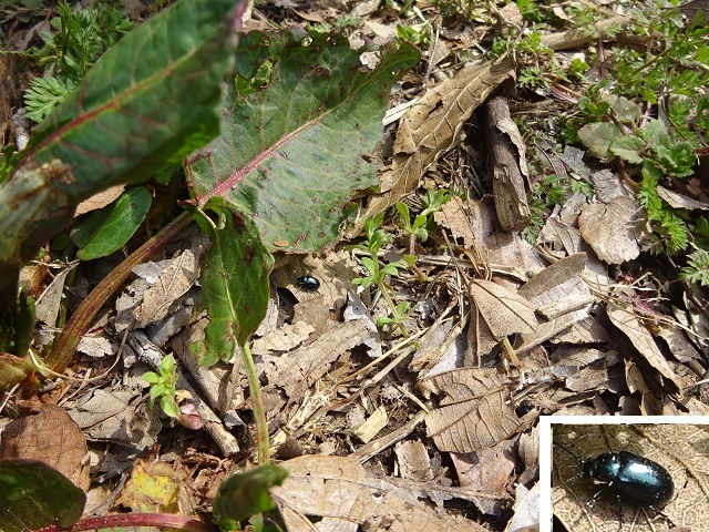 ギシギシをよく観察すると、コガタルリハムシがいました。 |