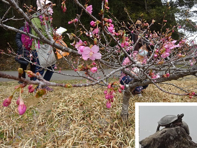09 池岸のカワヅザクラがとても綺麗。下夕池にはカメが甲羅干し。バンも歩道を闊歩していまいした。 |