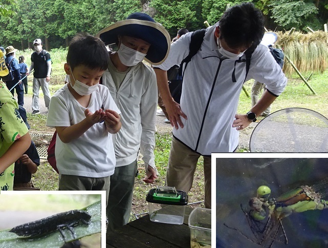 06 前日の田んぼ教室で捕まえたヤゴ。各自今日、捕ったトンボをじっくり観察。 |