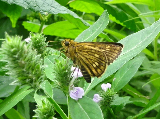 05 草ぼうぼうの菖蒲田も良く目を凝らして下をみるとナガコガネグモがお食事中 |