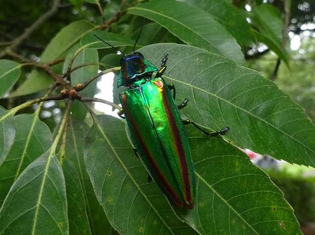 ヤマトタマムシ。玉虫色の光沢は本当に美しい。撮影後、弱っていたので捕まえられないように、 |