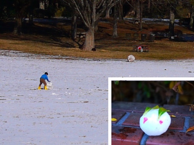 03 雪だるま作りに夢中の子ども。誰が作ったのかとてもかわいい、小さな雪ウサギがチョコン。 |