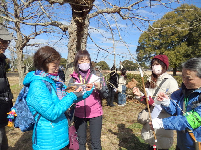 |   2月の冬晴れのもと、昭和の森で「植物の冬の過ごし方」観察会が実施されました。参加者はいろいろな樹木や草花の冬の姿を観察し、冬の寒さと乾燥からの守り方や春の準備がもうできていること等を知りました。そして、それぞれの冬の過ごし方に感心したり、驚いたりしていました。 | |