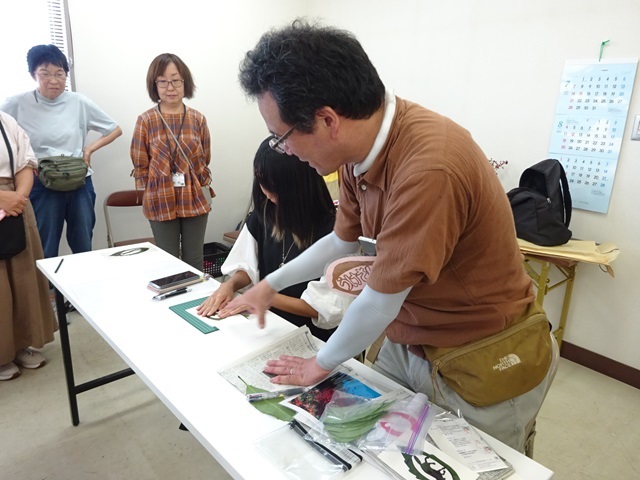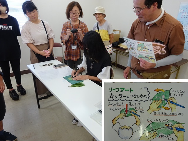 デザインカッターを安全に楽しく使用するため、基本の使い方を自然観察指導員が実演。 |
