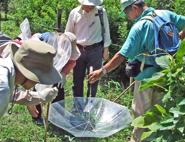 ![]() 06 カサに落としてコガネムシを観察できました(カサも観察道具) |