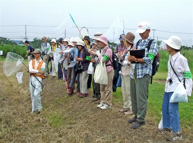 ![]() 01 講師と一緒にトンボ捕りのスタートです |