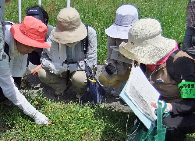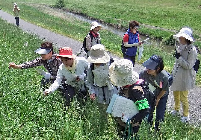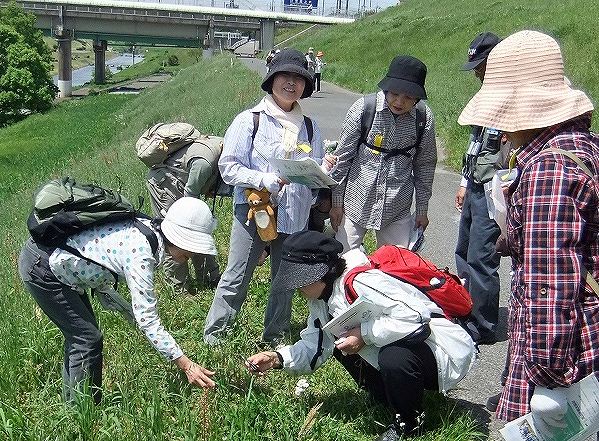 | 利根川と江戸川を結ぶ全長約8.5kmの人工の運河で、120年前の明治23年に完成。水運の役割を終え、現在は沿岸の野田、柏、流山市民の憩いスペースで、今の季節は土手にたくさんの野草が咲き、冬は多くの野鳥が飛来するところです。ここには希少種約30種類を含む500種を超える多様な植物が生育しています。今回は「似ている植物の見分け方、みんなで一緒に挑戦しよう」というテーマで、担当指導員は案内のシナリオづくりに工夫を凝らして楽しい観察会に努めました。 | |