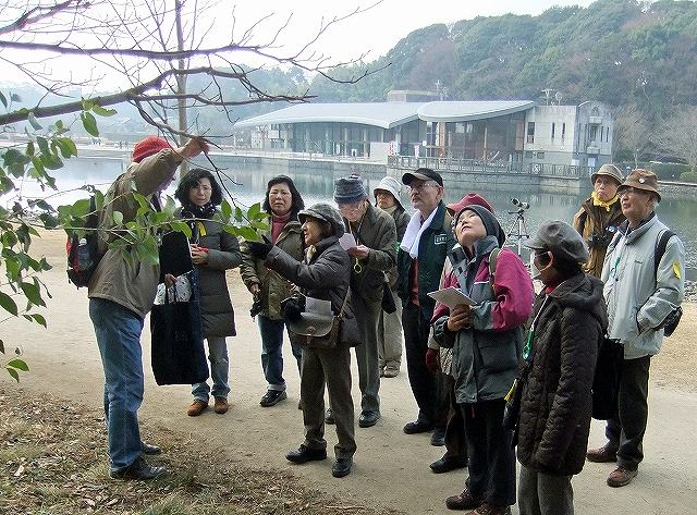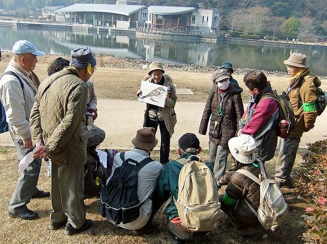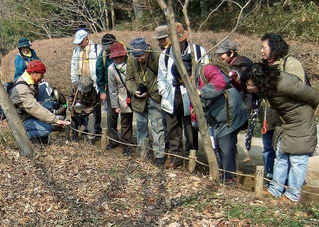 | 松戸市のほぼ中央に位置し、松戸で一番緑の多いところで、昔は斜面林に囲まれた谷津で、豊かな湧き水を利用した田んぼでした。広さは約50haで、常緑と落葉の樹木・野草・鳥・昆虫も多く、自然尊重型の公園として「都市計画学会賞」を受賞しています。野草園を中心に、春のきざしを見つけに観察会を行いました。 参加者の感想:①楽しかった。自然にあまり関心がなかったが、これからは興味をもって歩きたい。②スズメクイズは楽しかった。普段よく見ているつもりでも見てないものですね。③一つのテーマで参加することがほとんどでしたが、今回のようにオールランド的に観察できたのは大変良かったです。④いつも歩いているだけで、今日は多くの発見がありました。立ち止まることも必要ですね。 | |