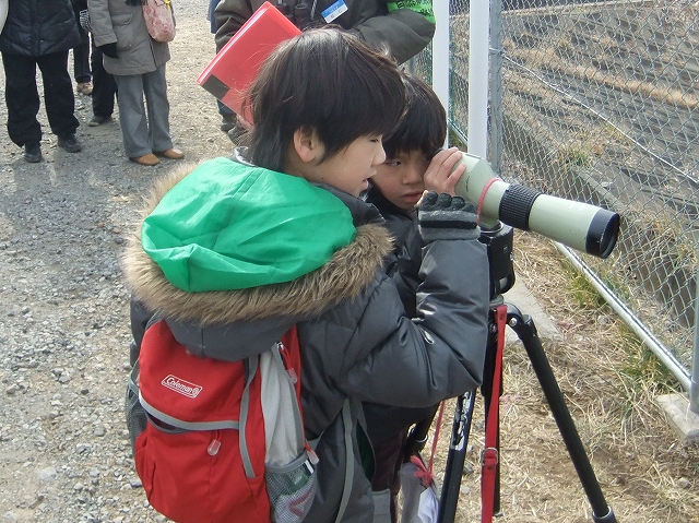![]() 04 子どもたちが見やすいように、フィールドスコープを低く設定してあります。 |