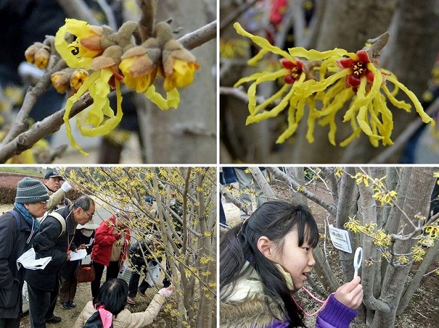 ![]() 05 マンサクの細長い4枚の花びらがツボミの中でどのようにたたまれていたかを観察 |