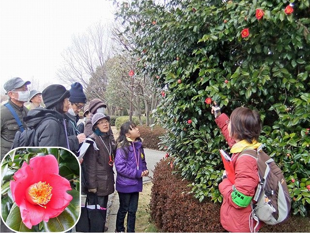 元は米軍の基地で、開園したのが1985年、広さは約40haの県立公園です。園内は日本庭園やイタリア庭園、四季の広場、バラ園などがあり、四季の移ろいを感じながら、園内をゆっくりと散策されている方が多くいます。今回は、春に向けて植物たちはどんな工夫をしているかの観察会でした。 柏の葉の由来:葉には芳香があり、さらに翌年に新芽が出るまで古い葉が落ちない特性から「代が途切れない」縁起物とされ、柏餅を包むのに用いられています。 | |