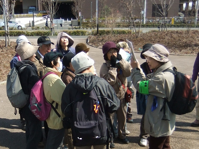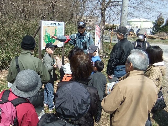 | 千葉県で初めてオオタカの営巣が確認された市野谷の森は、つくばエクスプレスの開通に伴う開発で消滅の危機となりましたが、行政への提案と交渉を続けた市民活動が実り、樹林地の約半分が公園として残されることになりました。生物多様性地域戦略を市町村レベルでは全国で最初に策定した流山市。調整池の整備や街路樹の様子などの街づくりの特徴も見ながら森を目指し、オオタカには出会えませんでしたが、春浅い森の自然を楽しみました。 | |