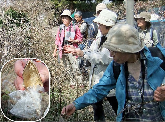 ![]() 04 ガガイモの鞘を見つけて中を開けるとふわふわの綿毛つきの種子が出てきました |