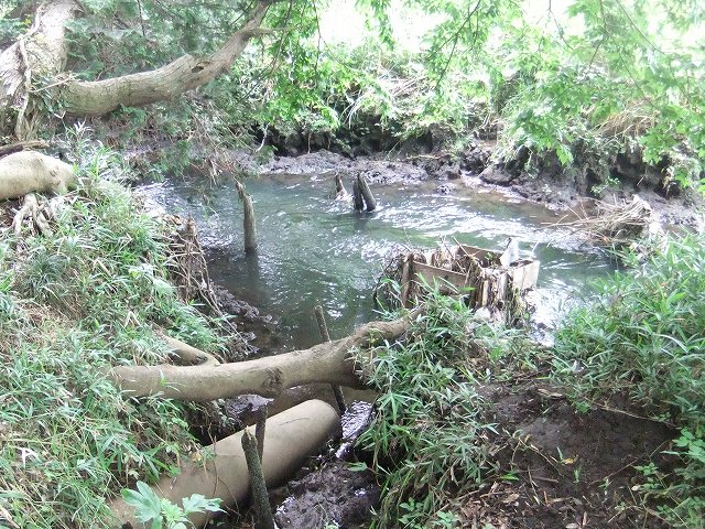 ![]() 06 支流では自噴する湧水がみられ、大柏川に合流する地点では水量が豊富です。 |