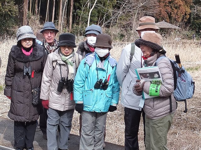 大町公園自然観察園は、全長2kmに亘って南北に広がる長田谷津で、四季折々の風景を楽しめるところです。今までは春や秋の良い季節の観察会でしたが、寒い北風が弱く、鳥がたくさん見られることを期待して開催しました。 <見られた鳥>アオジ、ウグイス、エナガ、カワセミ♀、キジバト、シジュウカラ、ジョウビタキ♂♀、シロハラ、ツグミ、ハシブトガラス、ヒヨドリ、メジロ、ヤマガラ、ルリビタキ♀♂、カルガモ♂♀、マガモ♂♀ | |
