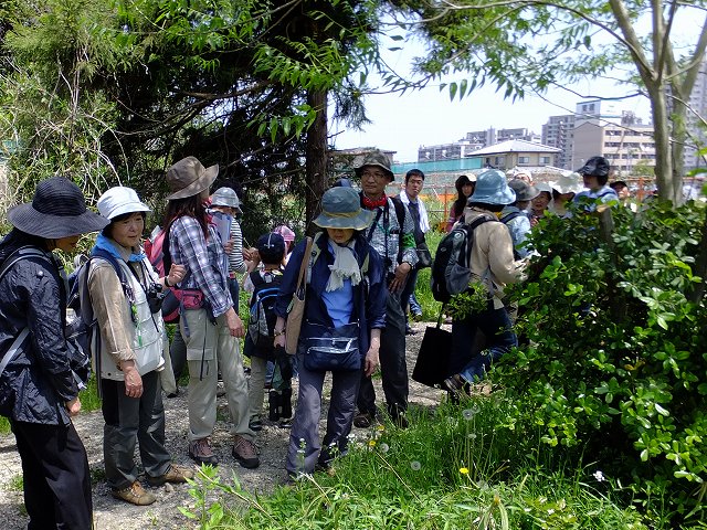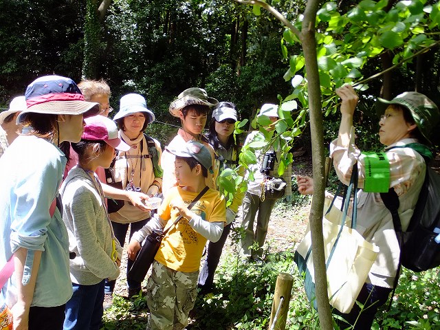 | 緑や森が身近にあることによって人間はどんなメリットがあるのかを考える観察会で、今回のテーマ:森があることで快適に豊かに暮らせることを意識してみよう!駅前から街路樹・公園内を通り、市野谷調整池横を歩き、市野谷の森へ入ることで、都市から森へのアプローチを実際に体験していただきました。森は静かで涼しくて、気持ちがよいです。楽しい発見がたくさんあり、素晴らしいところですネ。 森のシンボルツリーのオオカシ(シラカシ)の幹周りを子どもたちが測定し、高さを樹木スケールで測る楽しみを試みました。 運河には多種多様な植物(548種、うち絶滅危惧種35種)があります。この理由は、土手が急斜面で容易に立ち入ることが出来ないため、いろいろな種の草が生き残っており、土手から水辺までは定期的な草刈りにより、背丈の低いアマナ・スミレ・フデリンドウ・ジロボウエンゴサクなどが生き残ることができました。また、土手は土盛りして固めたもので、滲み出し水が川辺りに溜まり湿地帯になっているため、セリ・クレソン・オギ・ヨシ・ヤナギ・マコモ・アキニレなど湿地の植物が多数見られます。 | |