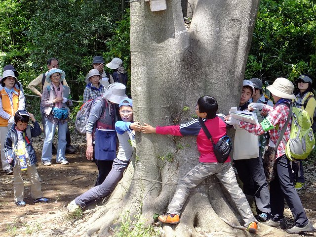 ![]() 05 子どもたち3人でシンボリツリーを測定:幹回り3.8m |