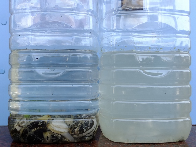 ![]() 08 二枚貝の浄化作用の実験で、左側はきれいになっています |