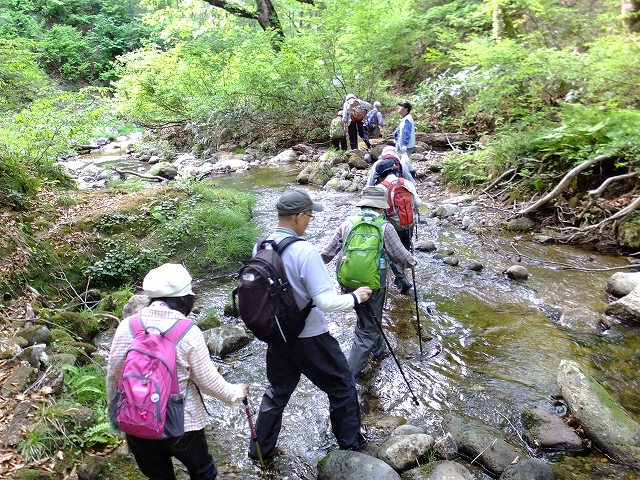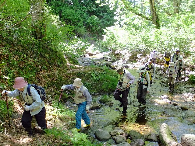 ![]() 01  渓流歩き①足元に気をつけて慎重に歩行 |