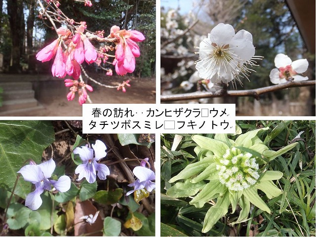 ![]() 07 カンヒザクラ・ウメ・タチツボスミレ・フキノトウなどが見られ、春の訪れです |