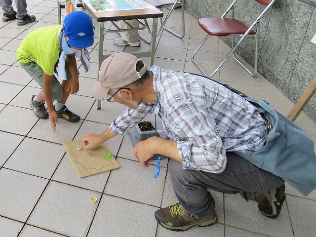 | 今年の夏は6月にやってきて猛暑日続きで台風が度々やってきて予定を狂わせる。 この日の昼頃には雨が止み、曇から晴の予報、ドンちゃんグリちゃんのラリーの実施を決定して、設営準備であったが、俄かの雨降りで公園にはまばらの人影、それでも家族連れがやってきてパークセンターの室内ザリガニ釣りもあり、探検ラリーに参加をしてくれた。昨年の半分程度であったが楽しく回れたようだ。羽化したばかりの白いミンミンゼミを発見して見られた参加者はラッキー! | |