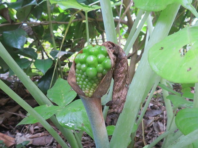 ![]() 08 ムサシアブミに大きな株で果実が未だ青い状態 |