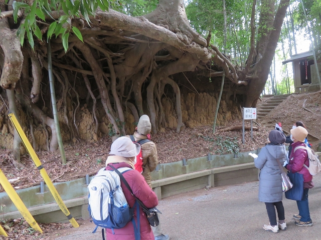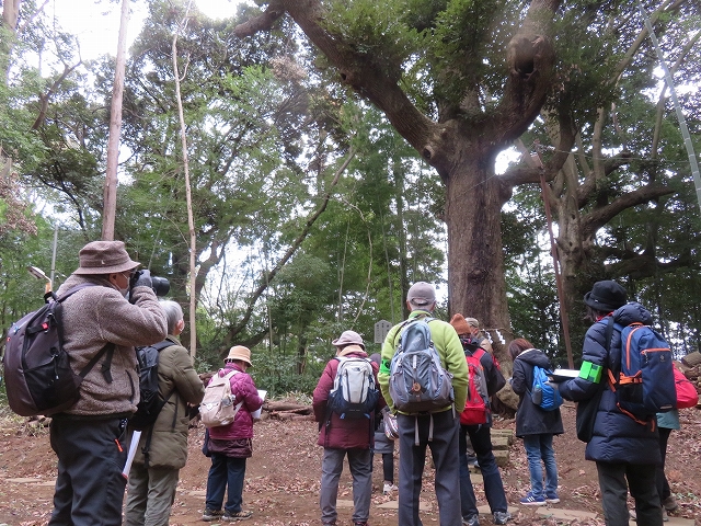 |  小室地区は旧石器・縄文時代からの遺跡のある場所で、八幡神社には天満宮・妙見様など色々な祠が集められ、ご神木のスダジイがあり、斜面を下りると根っこの剥き出しがみられました。古い集落を抜けて 日当たりの良い草地ではオオイヌノフグリやホトケノザが咲き 春の兆しです。神崎川に出てカマキリの卵のう・ミノムシ、クワコの空繭など、晴れた空にはノスリやトビがみられる観察会でした。 | |
