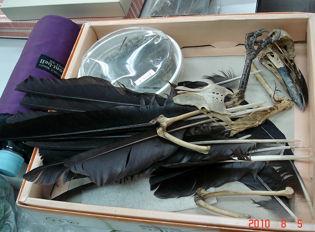 ![]() 07 サンプルを見せる(ハシブトガラスとスズメの骨と羽) |