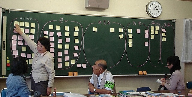 ![]() 06 雨の日の手法は ①見る観察、②遊び、③紙芝居:鳥・虫、④海、⑤実験 の内容にグル-プ分けできました。 |