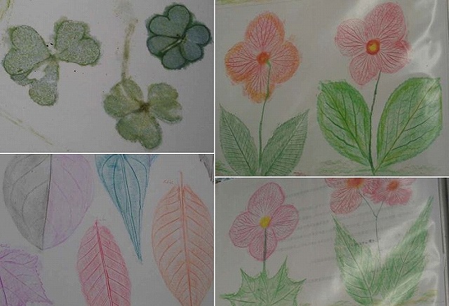 ![]() 07 カタバミを薄い紙に挟んで擦ったり、葉脈を生かして葉の形を写す…はみ出さないように |