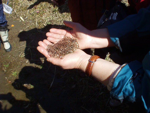 田んぼにはニホンアカガエルの卵塊が(ニホンアカガエル)