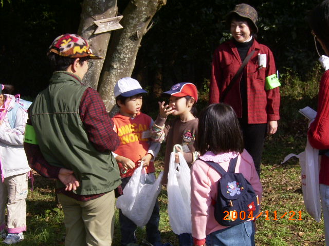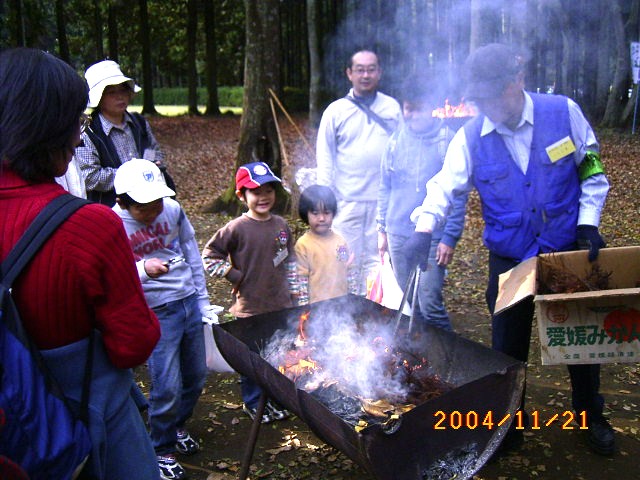 落ち葉や木の実をよく観察してね 焼き芋も楽しみに! |