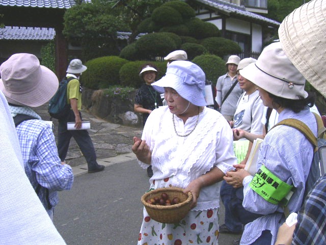 観察会の途中、地元の方から町の歴史について説明を受け、 お土産に栗までいただいた。ありがとうございました |