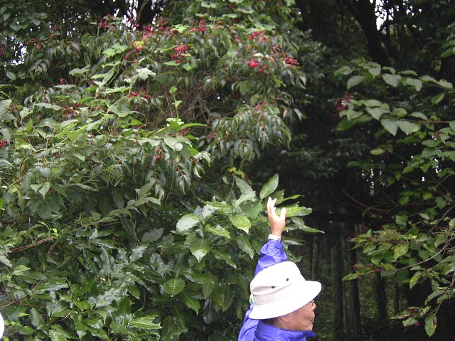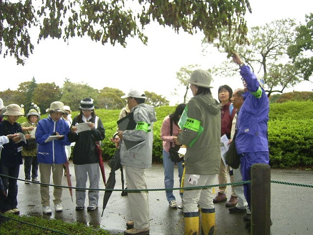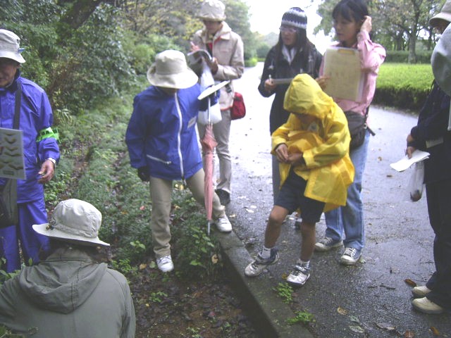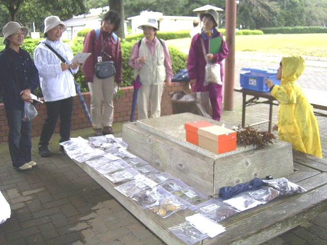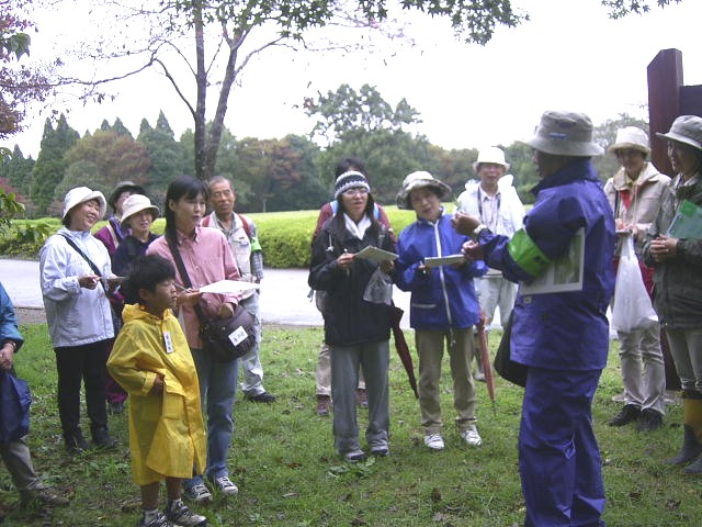 | 実りの秋、10月の昭和の森自然観察会のテーマは「たねのふしぎ」です。あいにくの悪天候のため、午前中の指導員研修を兼ねた下見は中止し、公園事務所の会議室で勉強会が開かれました。 広範囲な調査を基に簡潔に整理された資料、標本を使っての担当指導員による講義を受け、植物の生き残り術−タネを運ぶ工夫やしくみ−について熱心な討議が行われました。 午後は、折からの雨にもかわらず参加して下さった熱心な7名の参加者の皆さんと一緒に、小雨降る昭和の森を散策しました。「昭和の森の植物は生き残るため、タネを運ぶどんな工夫をしているのか」をじっくりと観察しました。風に運ばれたり、食べられて運ばれたり、くっついて運ばれたり!自然界が創り出した知恵、工夫の偉大さにあらためて感心し感動した雨中の観察会でした。 |