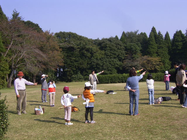子ども観察会の定番「五感準備体操」 目をつぶって 風はどちらから? |